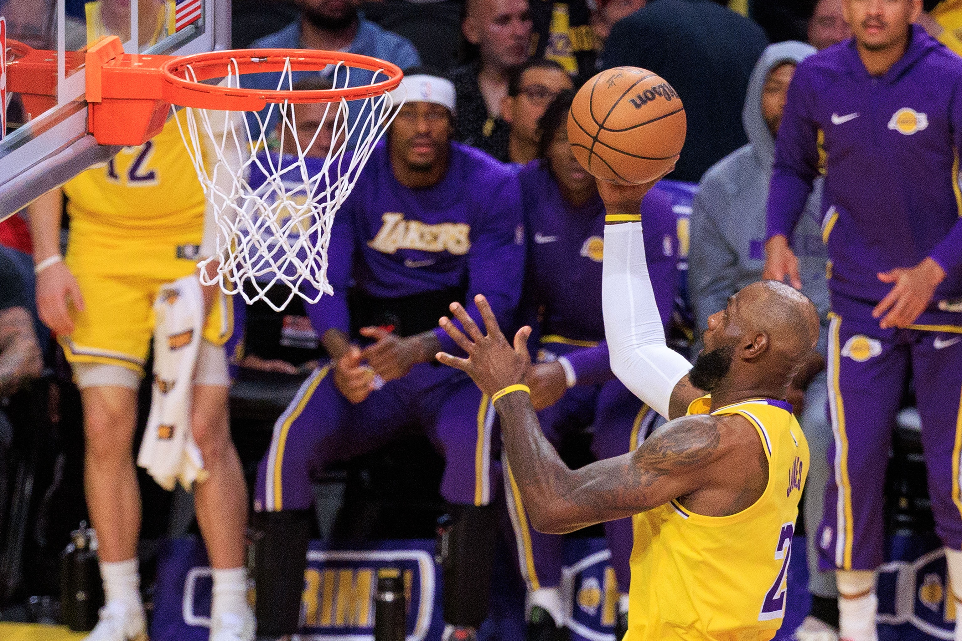 在巅峰时期,詹姆斯曾在一个赛季中命中了748个两分球。除了扬尼斯·阿德托昆博之外,你能猜出上一个做到这一点的球员是谁吗?是2009年的德维恩·韦德。要打破这项纪录,你的得分方式可能必须像阿德托昆博那样,而且还要在身体耐用性方面比他更强。你很难再找到一名詹姆斯这样打到40多岁,还在不断积累运动战进球的球员。